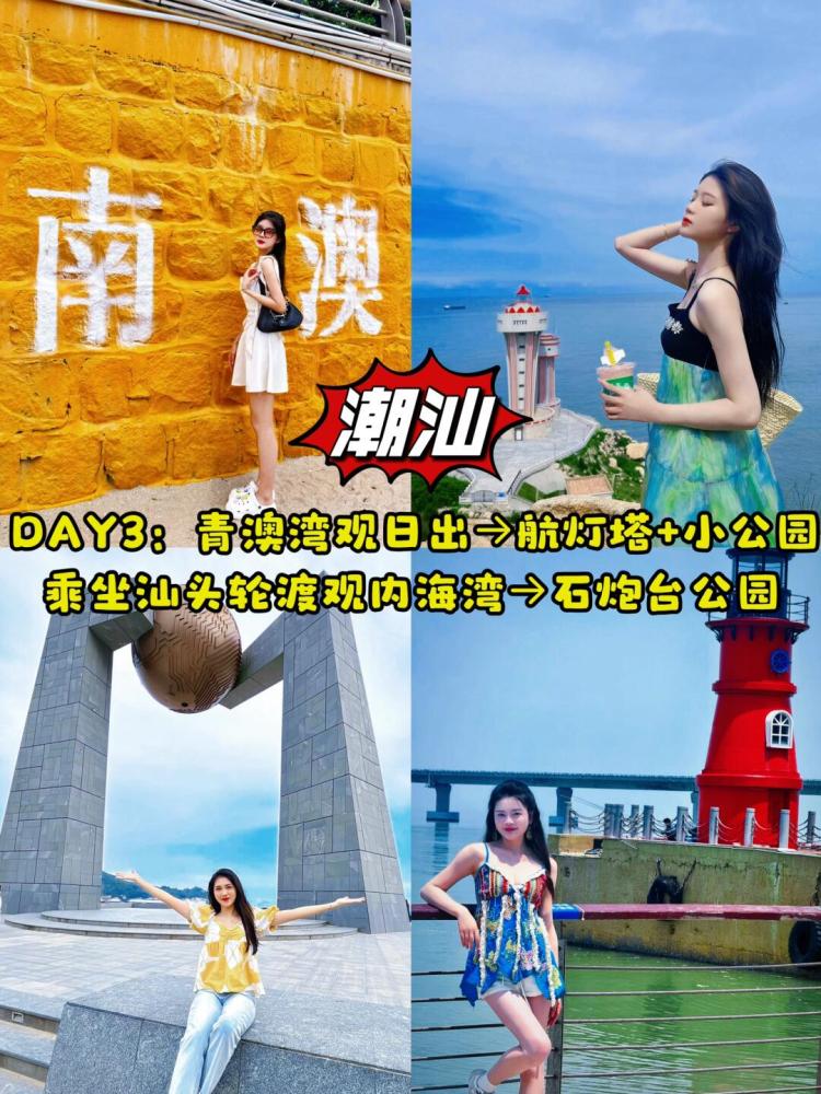 第三天:清晨前往南澳岛最东边的青澳湾观日出,坐在海滩上,极目苍穹,海天相连处一轮红日冉冉升起,影子倒映水面,海上风光尽收眼底-青澳湾自由活-网红启航灯塔-小公园-汕头轮渡观内海湾-石炮台公园