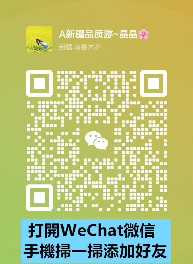 如果你也想來新疆旅遊,不妨聯絡晶晶導遊,讓她為你量身訂做愉快的旅程。你可以透過微信添加她的聯絡方式: 18599210768点击复制 (👈點選號碼復制加微信,可免費訂制遊玩方案)。晶晶導遊會根據你的需求和興趣,為你規劃出一條最適合你的旅遊路線,讓你的新疆之旅充滿驚喜和樂趣! 。 點擊聯絡→